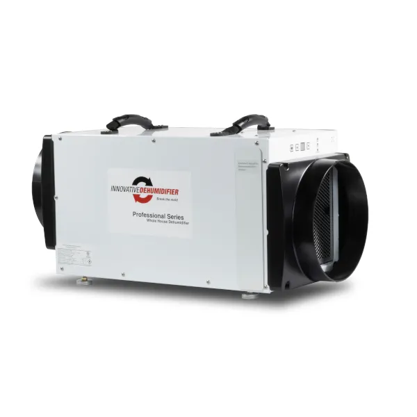 Our Professional Series dehumidifiers can be used in a variety of ways to control the humidity level in your entire home. In the simplest terms, when the humidity level exceeds the set point of the humidity controller, the dehumidifier will energize. The internal fan and compressor will turn on, forcing air to be drawn across the evaporator coil, which is cooler than the dew point of the air, allowing the coil to remove water from the air and exit via the drain. The air is then reheated as it flows across the condenser coil and distributed back into the conditioned space.